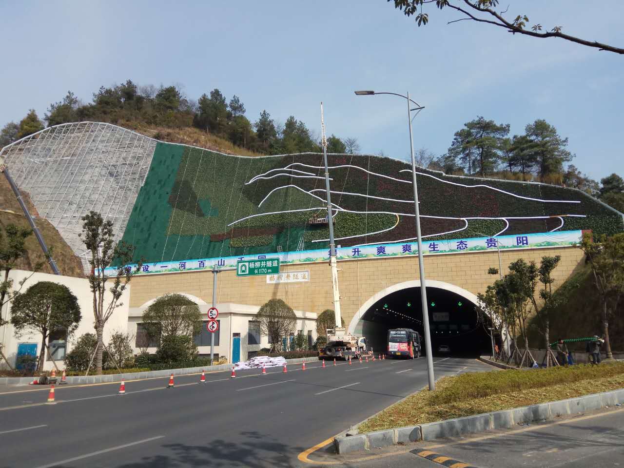 楊柳井隧道口上方邊坡綠化工程開工至今已歷時72天,工程接近尾聲;主體結構已完成,裝飾工程已完成3/4;預計該工程在本月下旬即可完工。